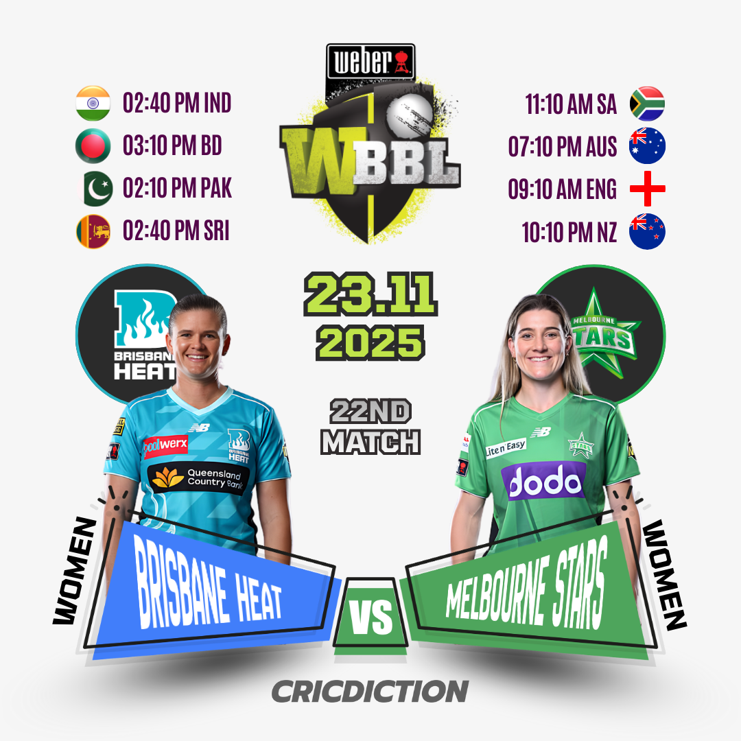 Brisbane Heat Women vs. Melbourne Stars Women: WBBL 2025 Match Preview The highly anticipated Match No. 22 of the Women’s […]