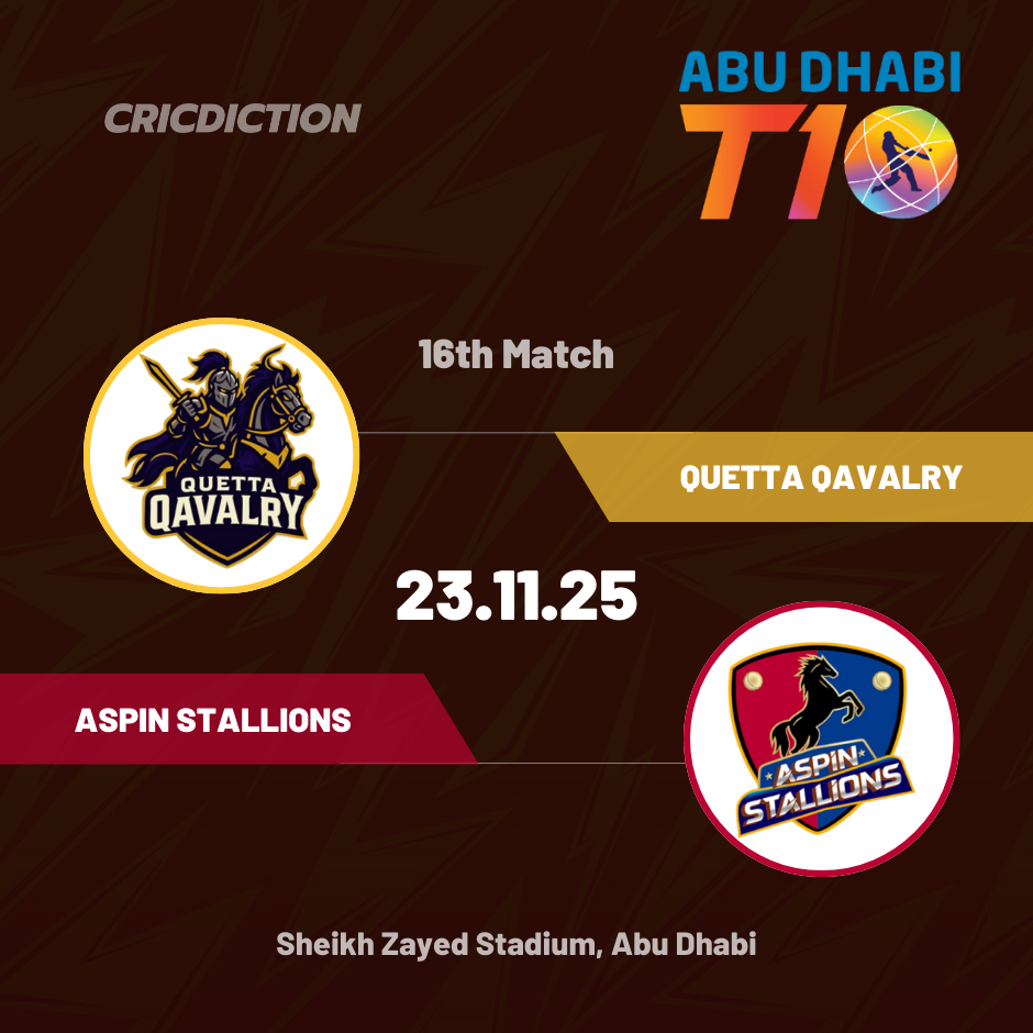 Quetta Qavalry to Clash with Aspin Stallions in Exciting Abu Dhabi T10 Match Match Details: Match: Quetta Qavalry vs Aspin […]