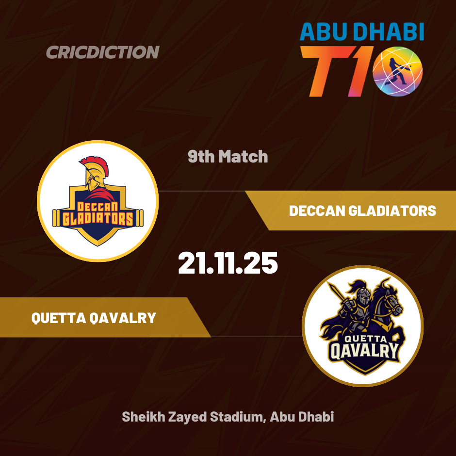 ### Deccan Gladiators vs Quetta Qavalry: Exciting Clash in Abu Dhabi T10 2025 #### Match Details **Match:** Deccan Gladiators vs […]