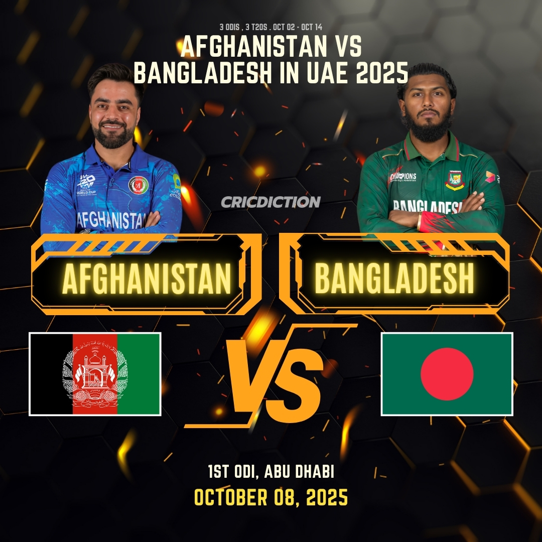 The stage is set for an exciting clash as Afghanistan takes on Bangladesh in the 1st ODI match of the Afghanistan vs Bangladesh series in UAE 2025. The match is scheduled to take place on October 8 at the Sheikh Zayed Stadium in Abu Dhabi.