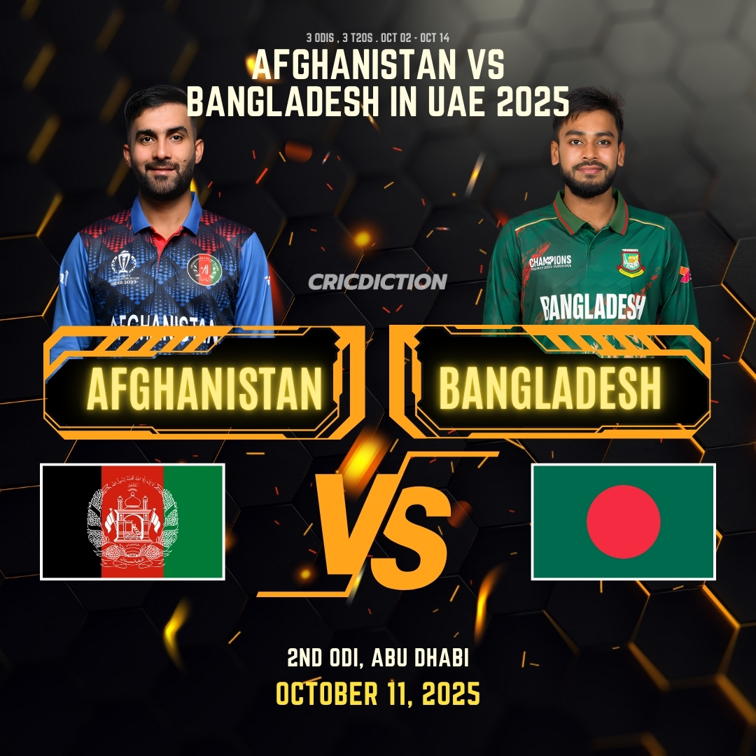 The stage is set for an exciting clash between Afghanistan and Bangladesh in the 2nd ODI match of the Afghanistan vs Bangladesh series in UAE 2025. The match will take place on October 11 at the Sheikh Zayed Stadium in Abu Dhabi. The game is scheduled to start at 12:00 pm GMT, 05:30 pm IST, and 04:00 pm local time.