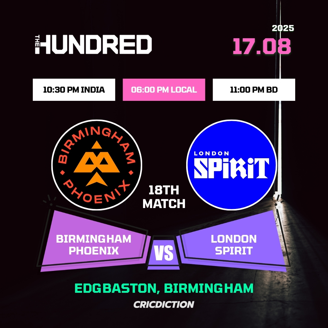The Birmingham Phoenix are gearing up to take on the London Spirit in the 18th match of The Hundred Mens Competition 2025. The showdown is set to unfold at Edgbaston on Sunday, August 17.