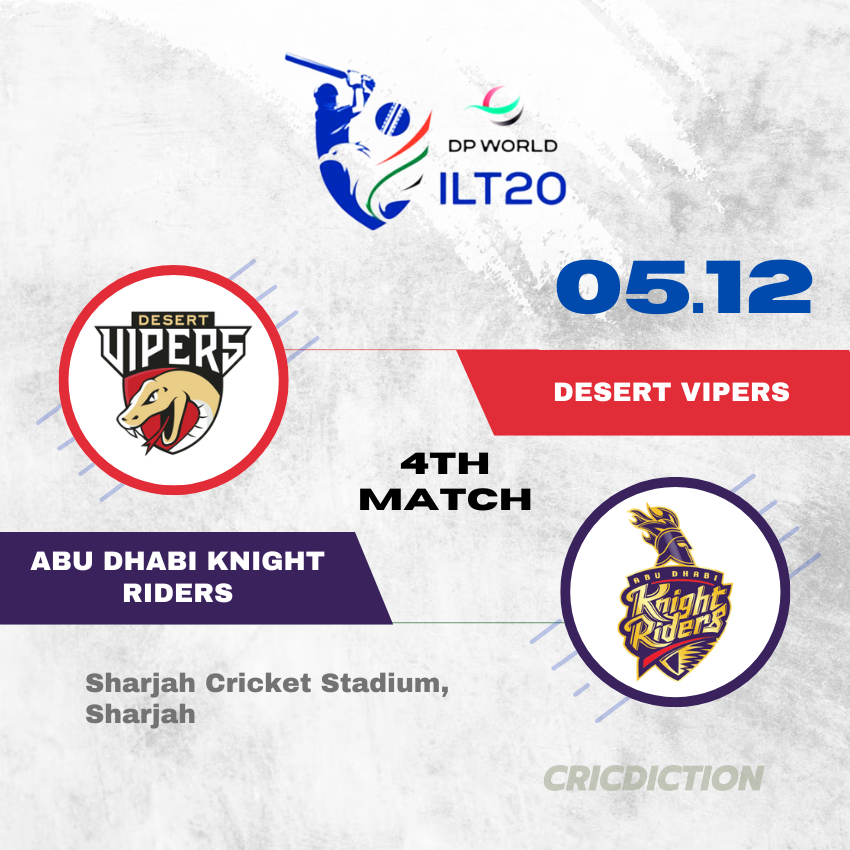 The highly anticipated matchup between Desert Vipers and Abu Dhabi Knight Riders, also known as DV vs ADKR, is set to take place as the 4th match of the International League T20 for the 2025-26 season. Cricket fans are eagerly awaiting this exciting showdown between two formidable teams.