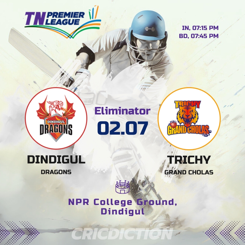 The stage is set for an electrifying encounter as the Dindigul Dragons gear up to face off against the Trichy Grand Cholas in the Eliminator match of the Tamil Nadu Premier League 2025. Scheduled to take place at the NPR College Ground on July 2, this match promises to be a thrilling showdown between two formidable teams vying for a spot in the next round of the tournament.