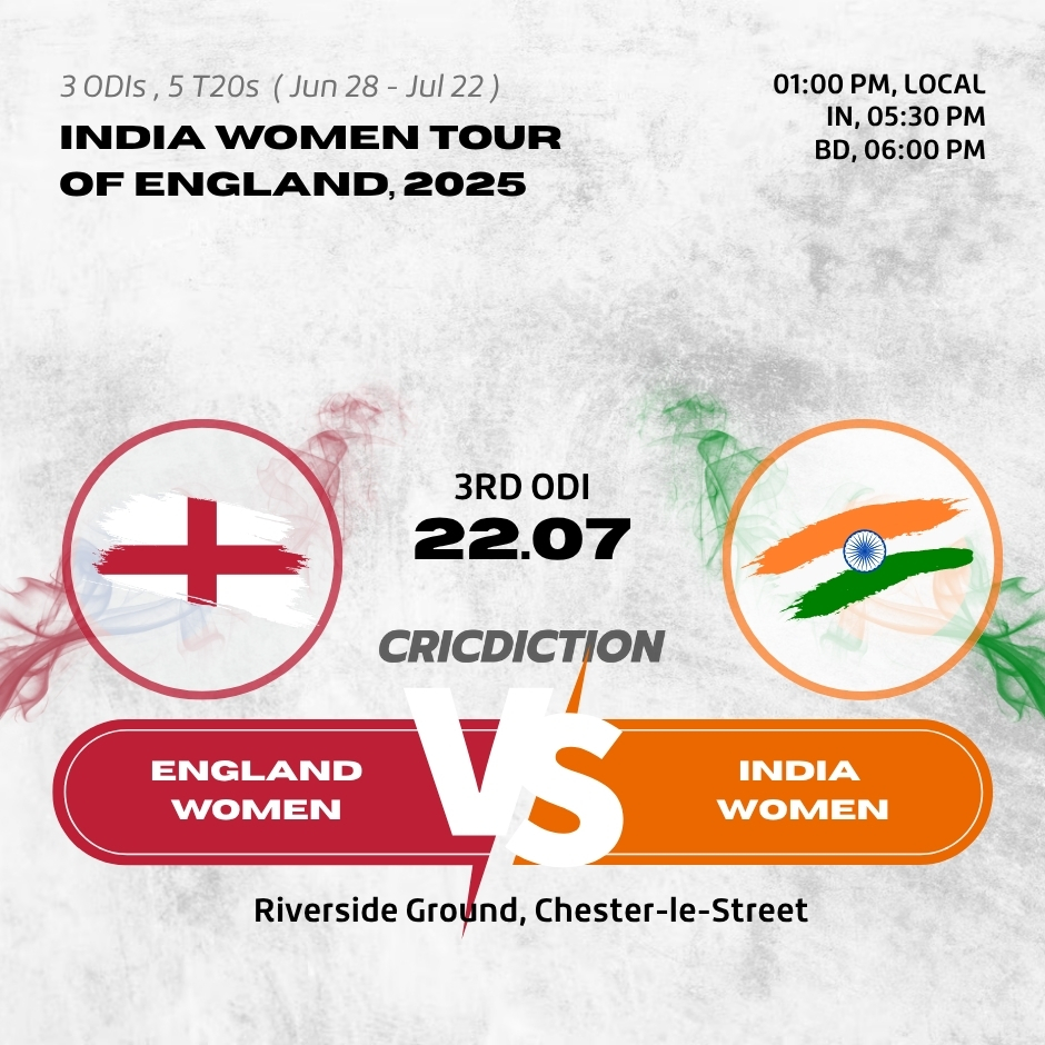 The England Women’s team is gearing up to face off against the India Women’s team in the 3rd ODI match as part of the India Women tour of England, 2025. The highly anticipated match is scheduled to take place at the Riverside Ground in Chester-le-Street on July 22 at 12:00 pm GMT.