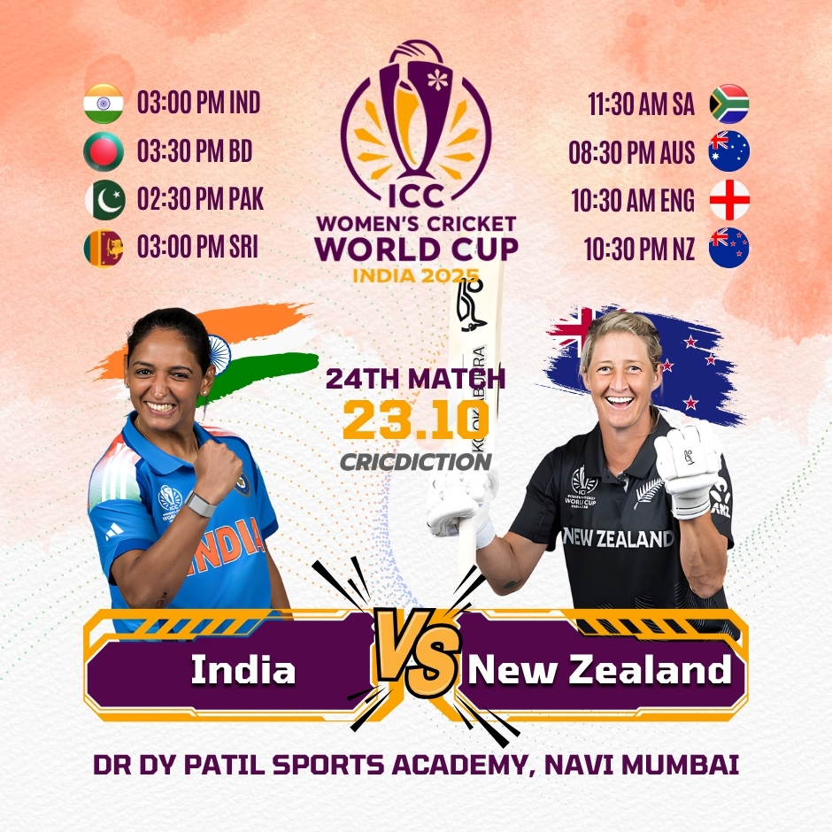 The upcoming match between India Women and New Zealand Women in the ICC Women’s World Cup 2025 is set to be a thrilling encounter. Scheduled to take place on October 23 at the Dr DY Patil Sports Academy in Navi Mumbai, this 24th match of the tournament promises to be an exciting clash between two powerhouse teams.