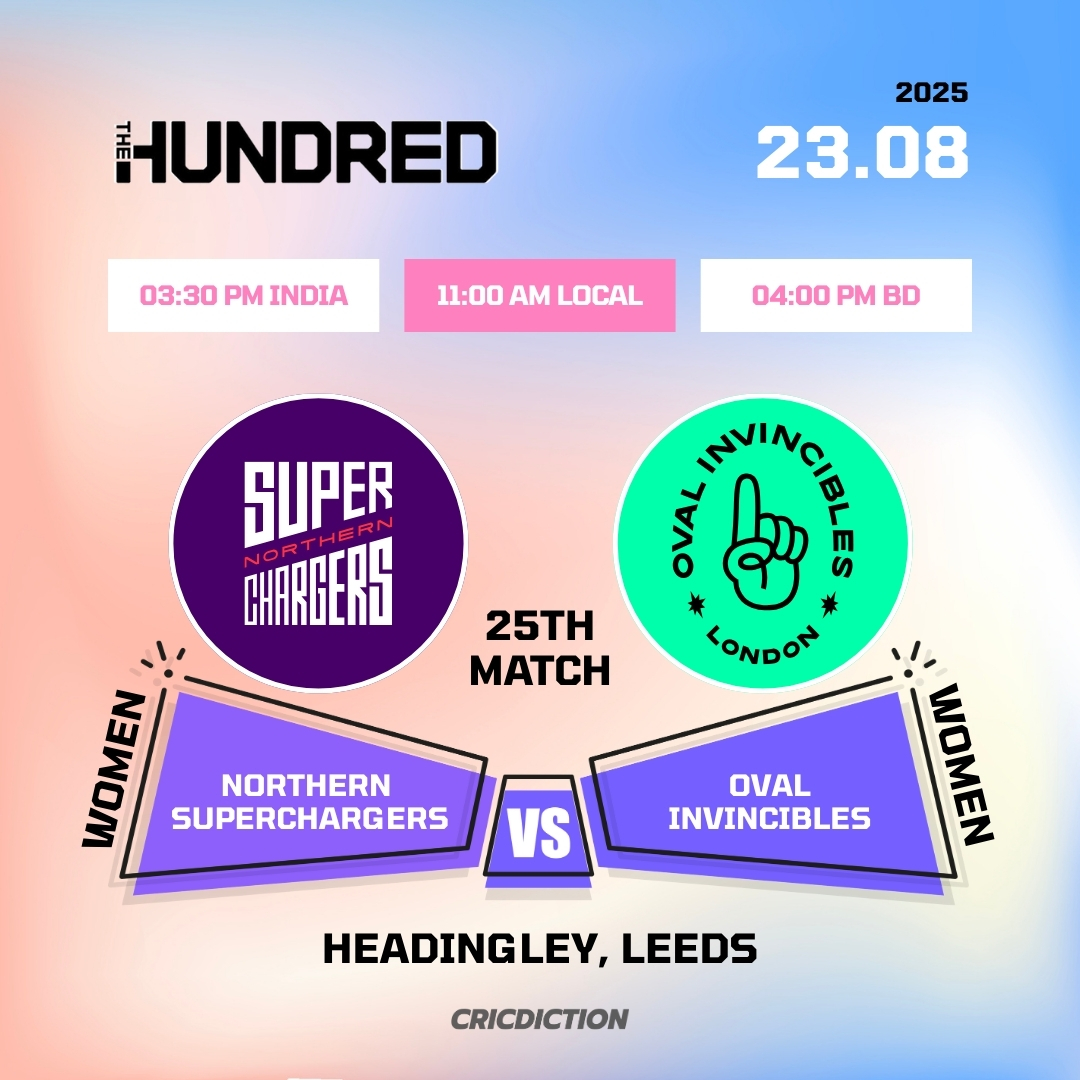 On August 23, the cricketing world will witness an intense battle between Northern Superchargers Women and Oval Invincibles Women in the 25th match of The Hundred Women’s Competition 2025. The match is set to take place at Headingley, Leeds, offering a thrilling spectacle for cricket enthusiasts.