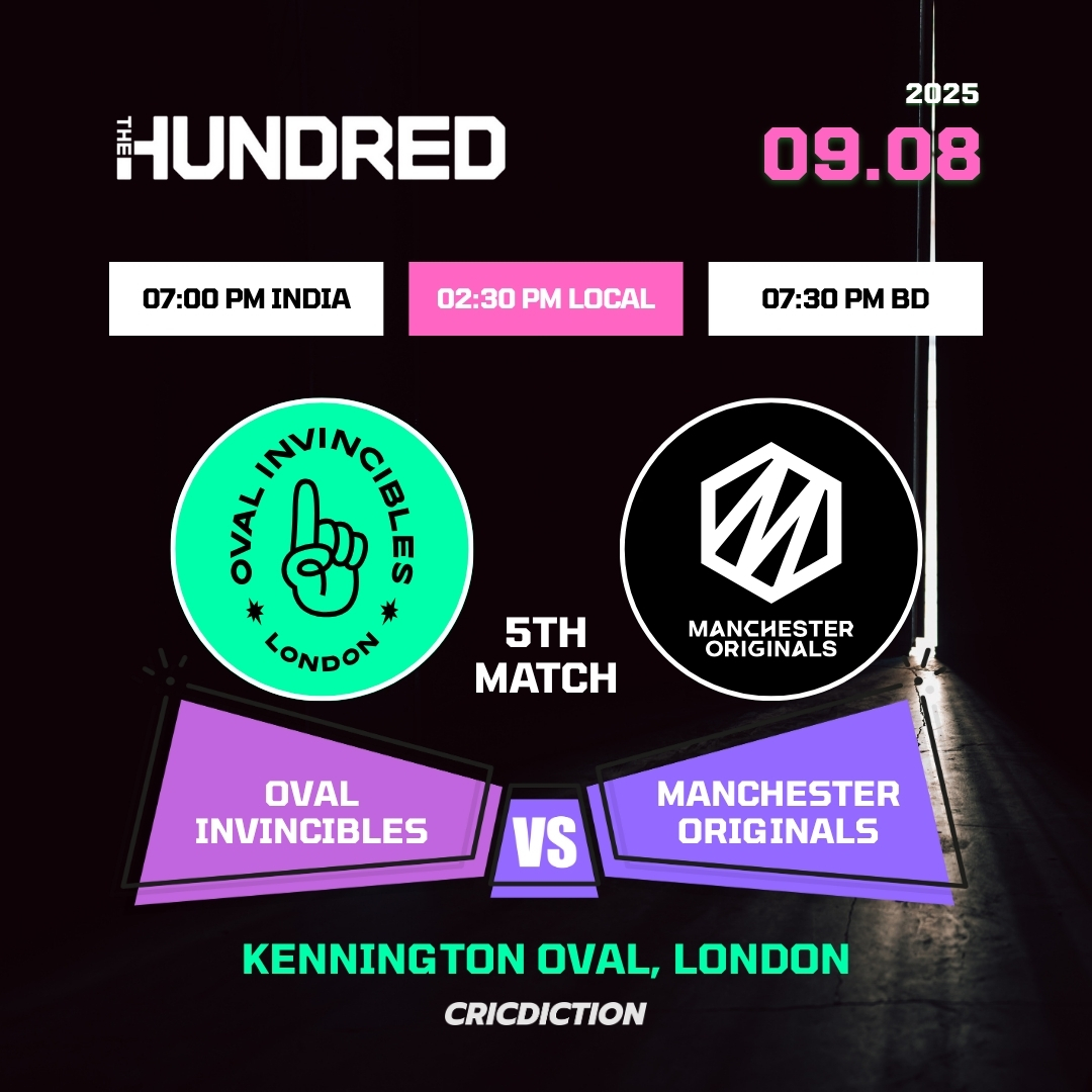 Oval Invincibles (OI) are gearing up to take on Manchester Originals (MO) in the 5th match of The Hundred Men’s Competition 2025. The highly anticipated showdown is set to unfold at the iconic Kennington Oval on Saturday, August 9.