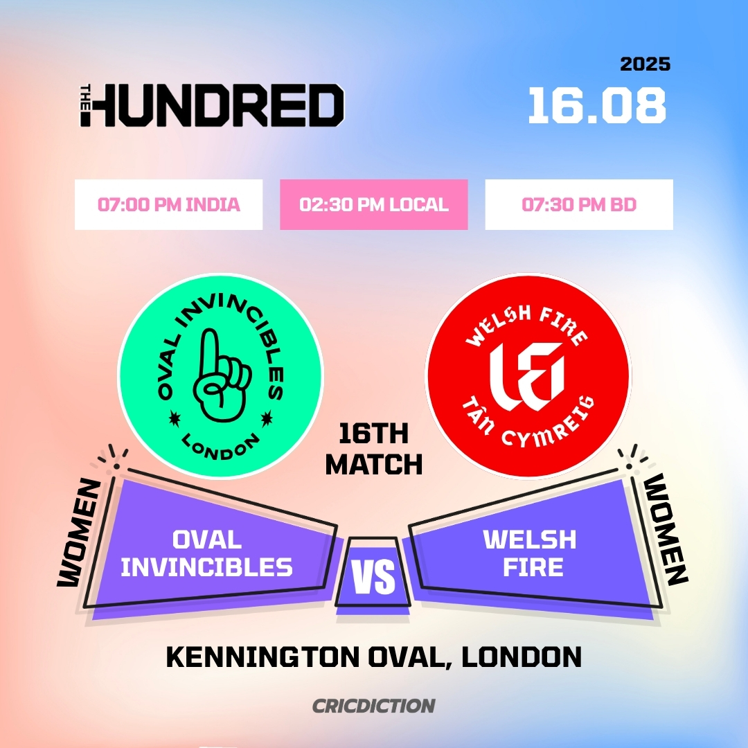 Stay tuned for what promises to be an enthralling encounter between two top teams in The Hundred Women’s Competition 2025. The clash between Oval Invincibles Women and Welsh Fire Women is set to deliver high-octane action and memorable moments for fans and players alike.