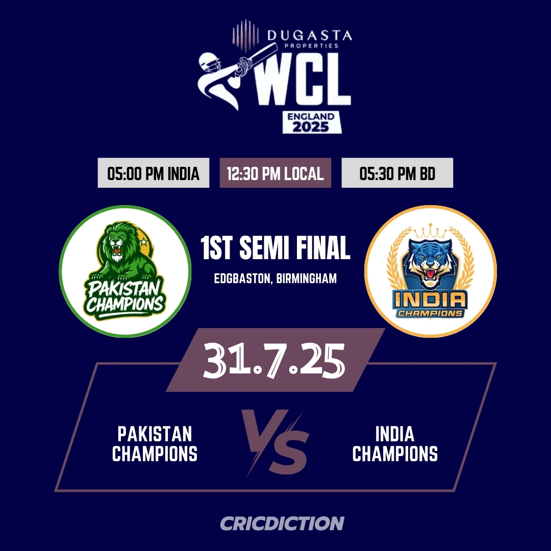 The highly anticipated 1st Semi Final match between Pakistan Champions (PAKC) and India Champions (INDC) during the World Championship of Legends 2025 is set to take place at Edgbaston on Thursday, July 31. Both teams are coming off impressive victories in their previous outings and are expected to bring their A-game to this clash of cricketing giants.