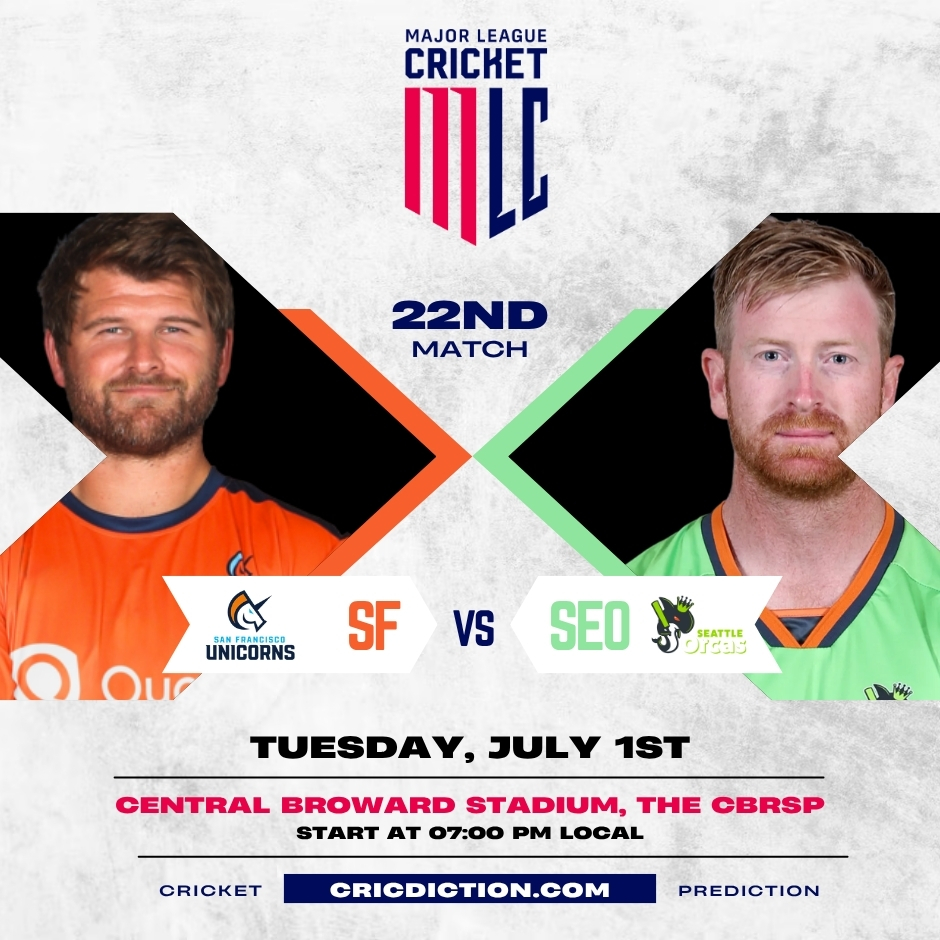 The upcoming match between the San Francisco Unicorns and the Seattle Orcas is eagerly anticipated in the Major League Cricket 2025. Scheduled to take place at the Central Broward Regional Park Stadium Turf Ground in Lauderhill on Tuesday, July 01, this clash promises to be an intense battle between two competitive teams.