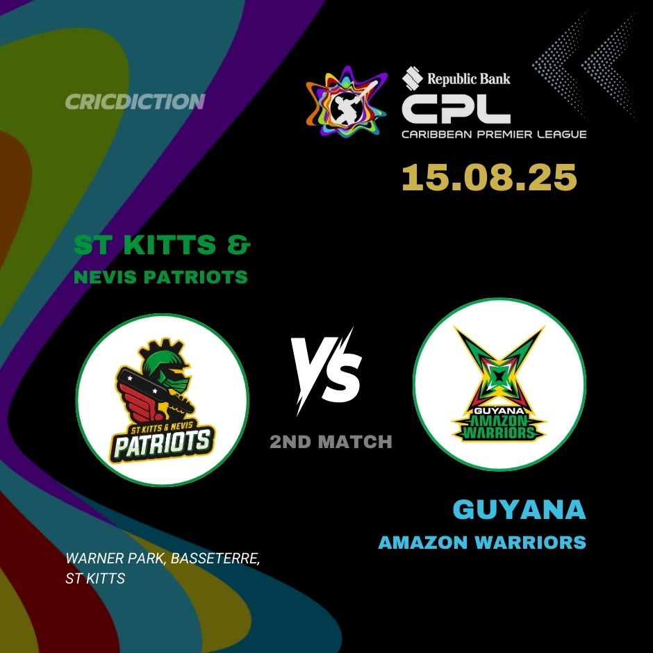 Match: St Kitts And Nevis Patriots vs Guyana Amazon Warriors( STKNP vs GAW ), 2nd Match, Caribbean Premier League 2025