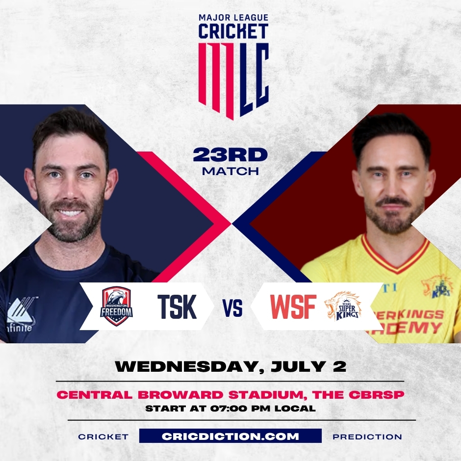 The Texas Super Kings (TSK) are gearing up to take on the Washington Freedom (WSF) in the 23rd match of the Major League Cricket 2025 season. The highly-anticipated showdown is set to unfold at the Central Broward Regional Park Stadium Turf Ground in Lauderhill, Florida on July 2 at 12:00 am GMT.
