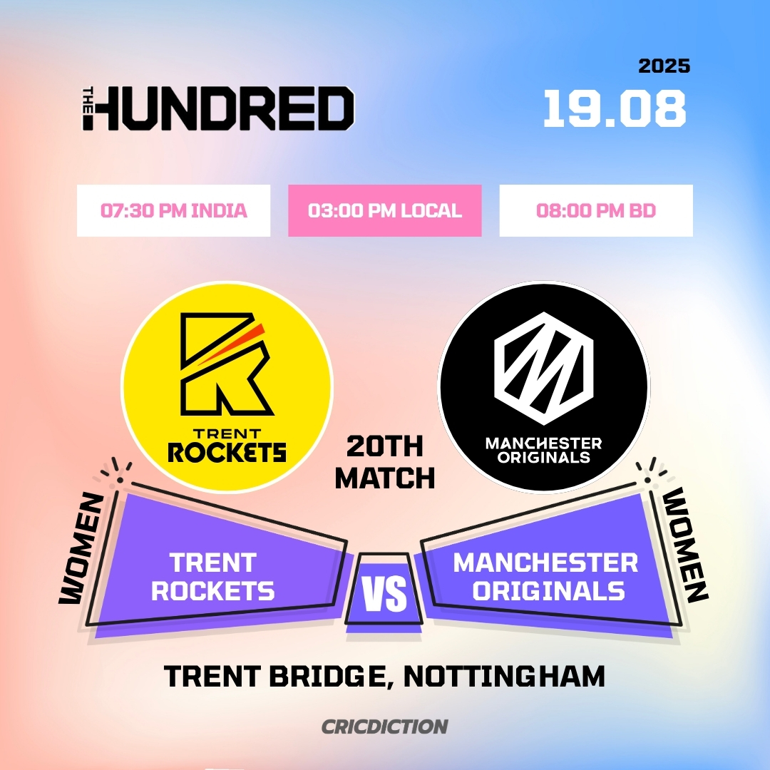 Two powerhouse teams, Trent Rockets Women and Manchester Originals Women, are set to face off in the 20th match of The Hundred Women’s Competition 2025. This highly anticipated matchup is sure to keep cricket fans on the edge of their seats.