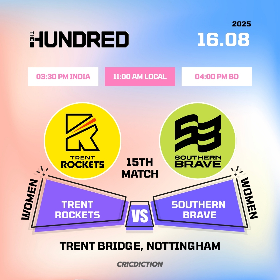 Excitement is brewing as Trent Rockets Women (TR-W) gear up to take on Southern Brave Women (SB-W) in the 15th match of The Hundred Womens Competition 2025. The match is set to unfold at Trent Bridge in Nottingham on Saturday, August 16.