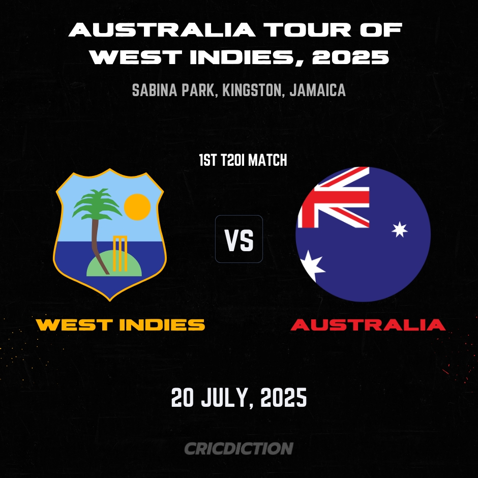 – **Match:** West Indies vs Australia (WI vs AUS), 1st T20 Match, Australia tour of West Indies, 2025