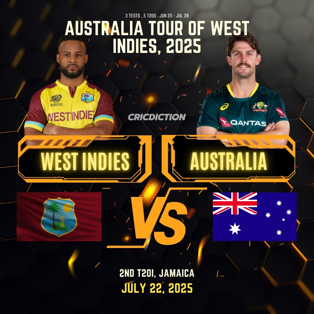 **West Indies** is gearing up to take on **Australia** in their 2nd T20 match as part of the Australia tour of West Indies, 2025. The match is all set to unfold at Sabina Park in Kingston on July 22.