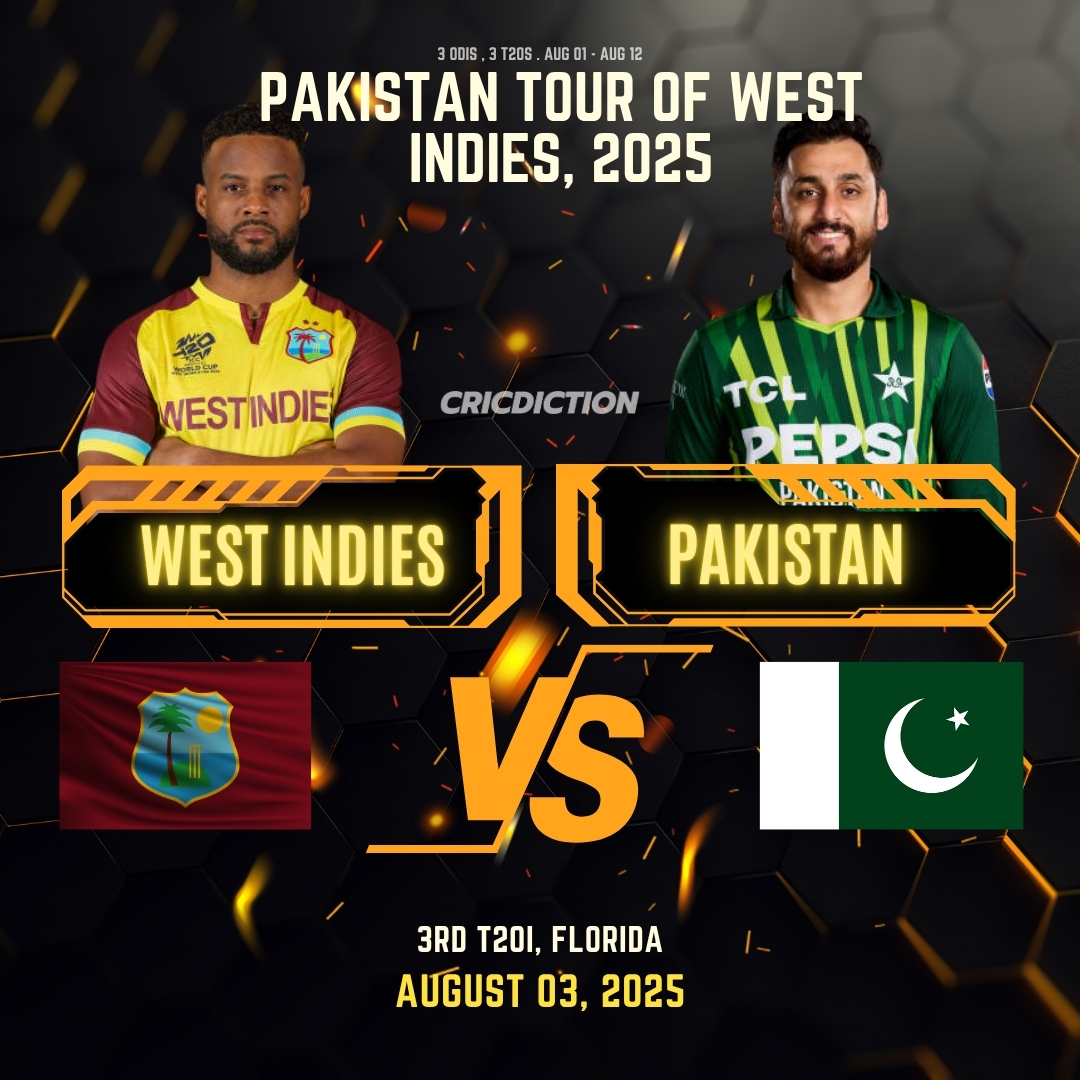 In what promises to be a thrilling encounter, West Indies will lock horns with Pakistan in the 3rd T20 match during the India tour of England, 2025 at the Central Broward Regional Park Stadium Turf Ground on Sunday, August 3.