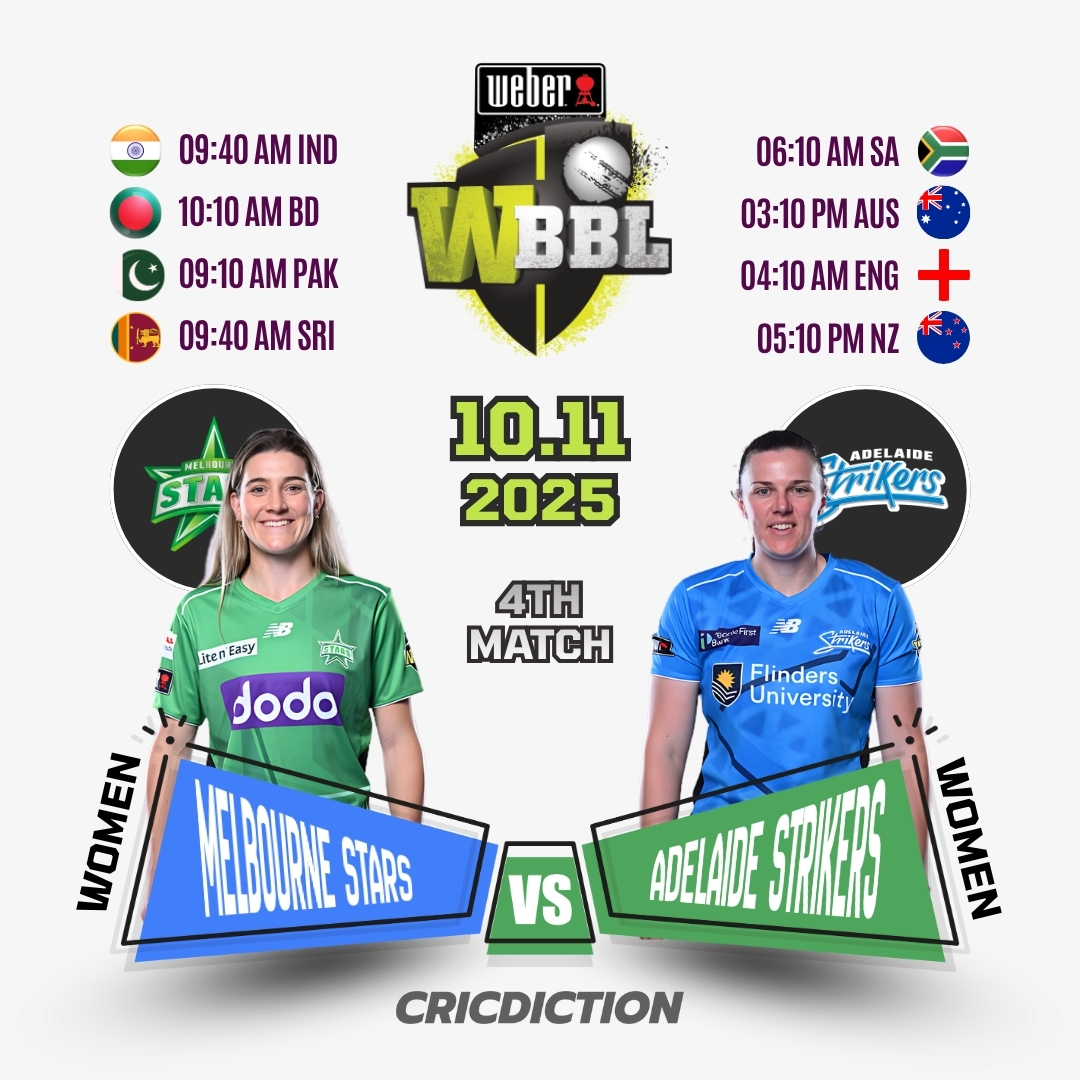 Melbourne Stars Women vs Adelaide Strikers Women in Women’s Big Bash League 2025 On November 10th, the Melbourne Stars Women […]