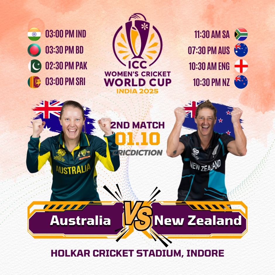 Australia Women will face off against New Zealand Women in the 2nd match of the ICC Women’s World Cup 2025 […]