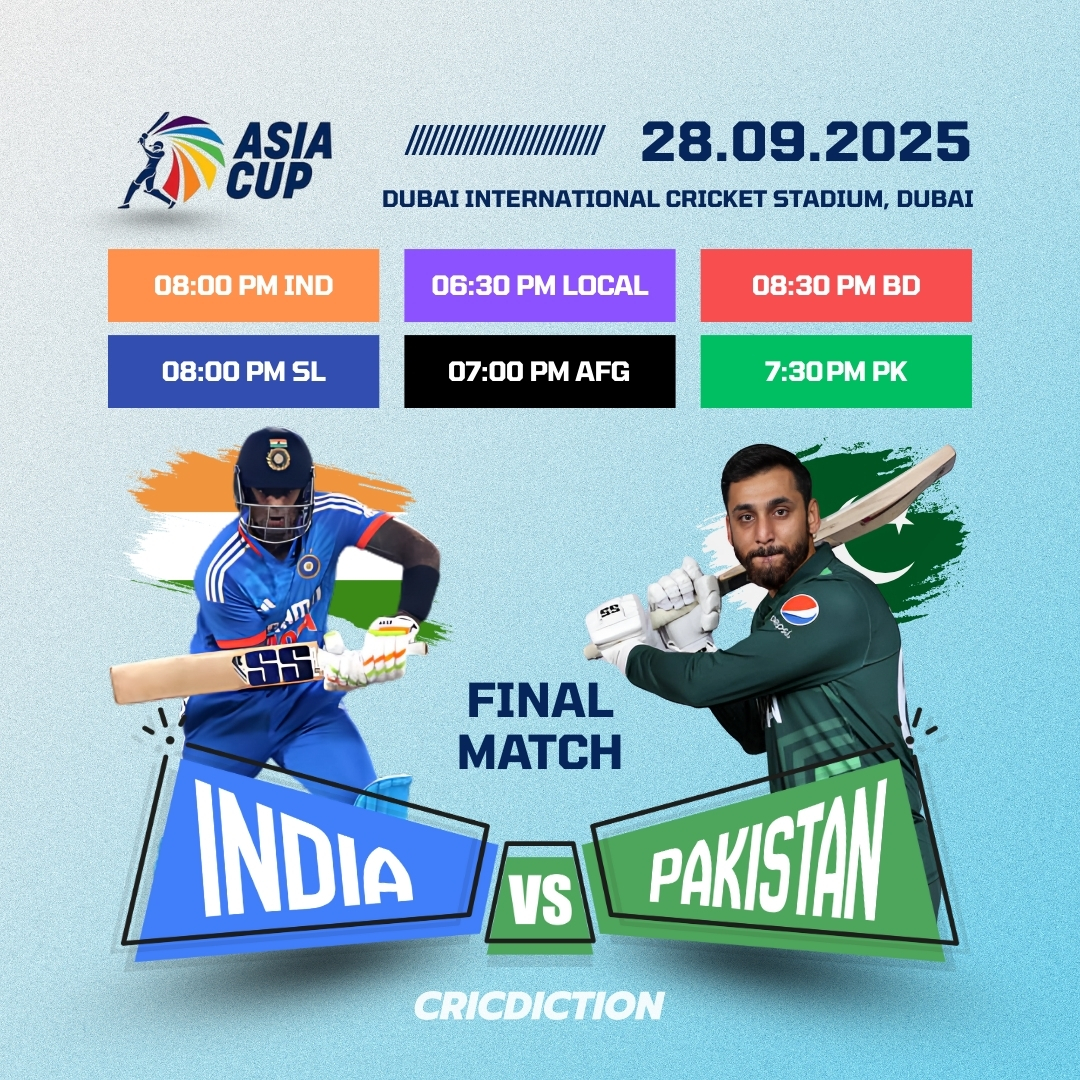 India (IND) will face Pakistan (PAK) in the final of the Asia Cup 2025 at the Dubai International Cricket Stadium […]