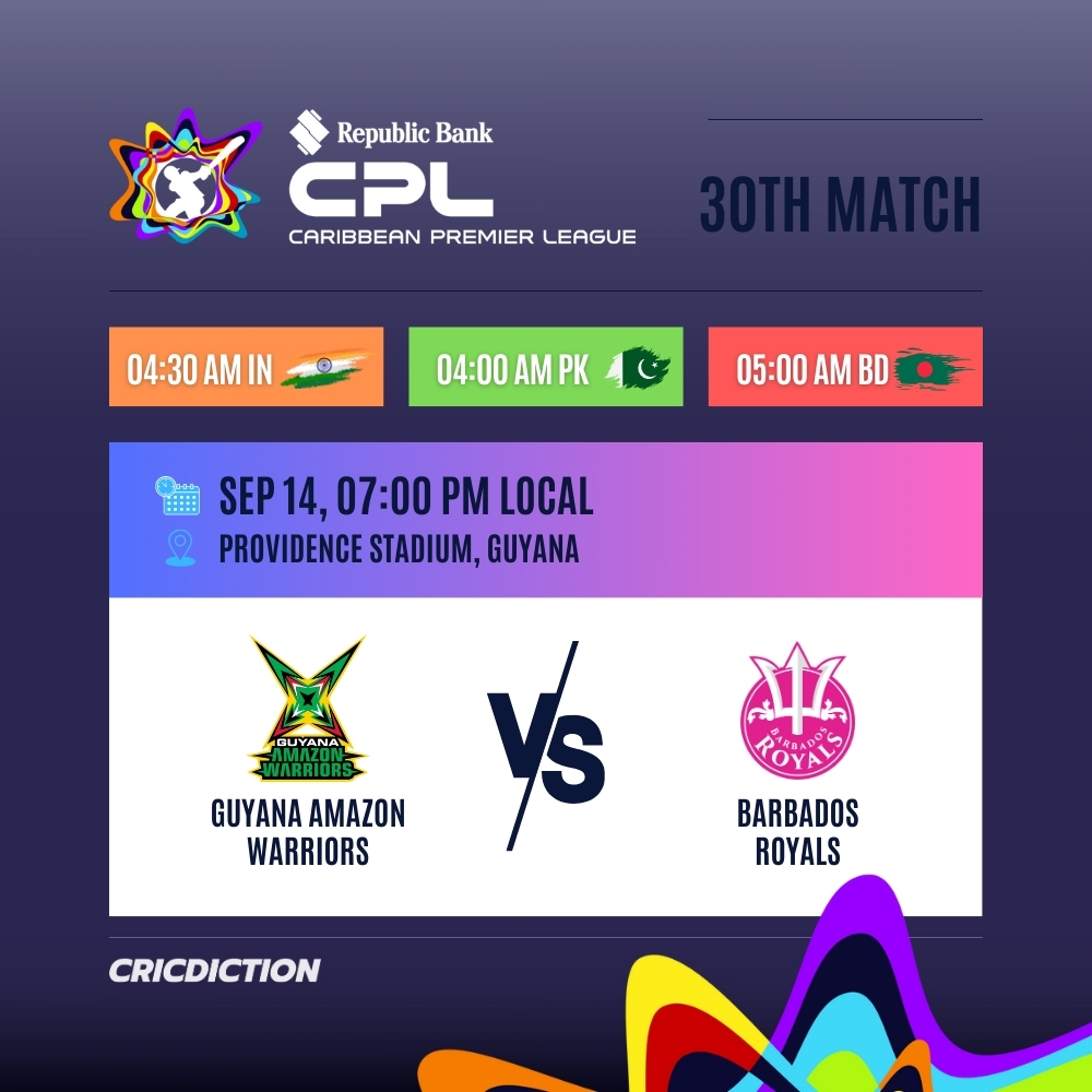 Guyana Amazon Warriors (GUY) will lock horns with Barbados Royals (BR) in match No. 30 of the ongoing CPL 2025 at the […]