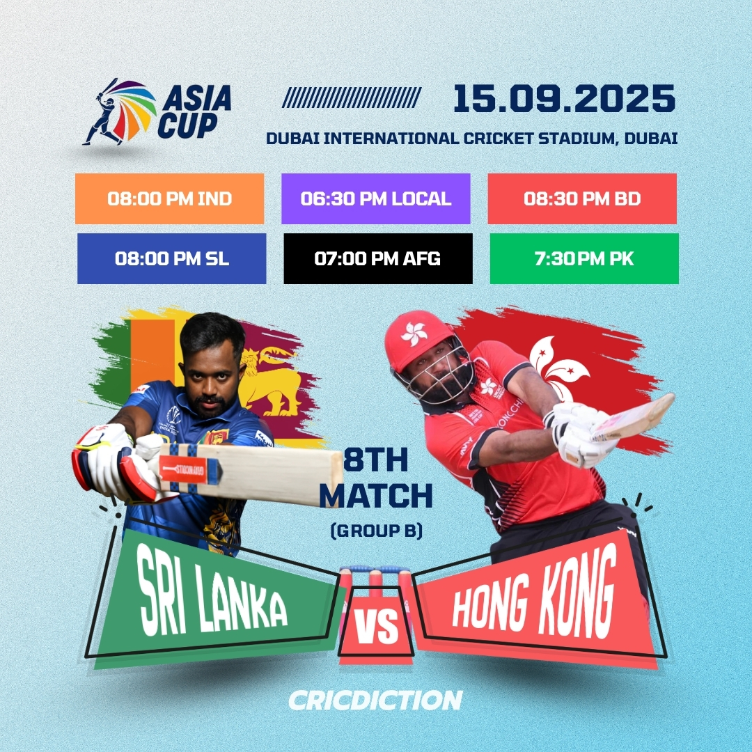 Sri Lanka (SL) will take on Hong Kong (HK) in Match 8 of the Asia Cup 2025 at the Dubai International […]