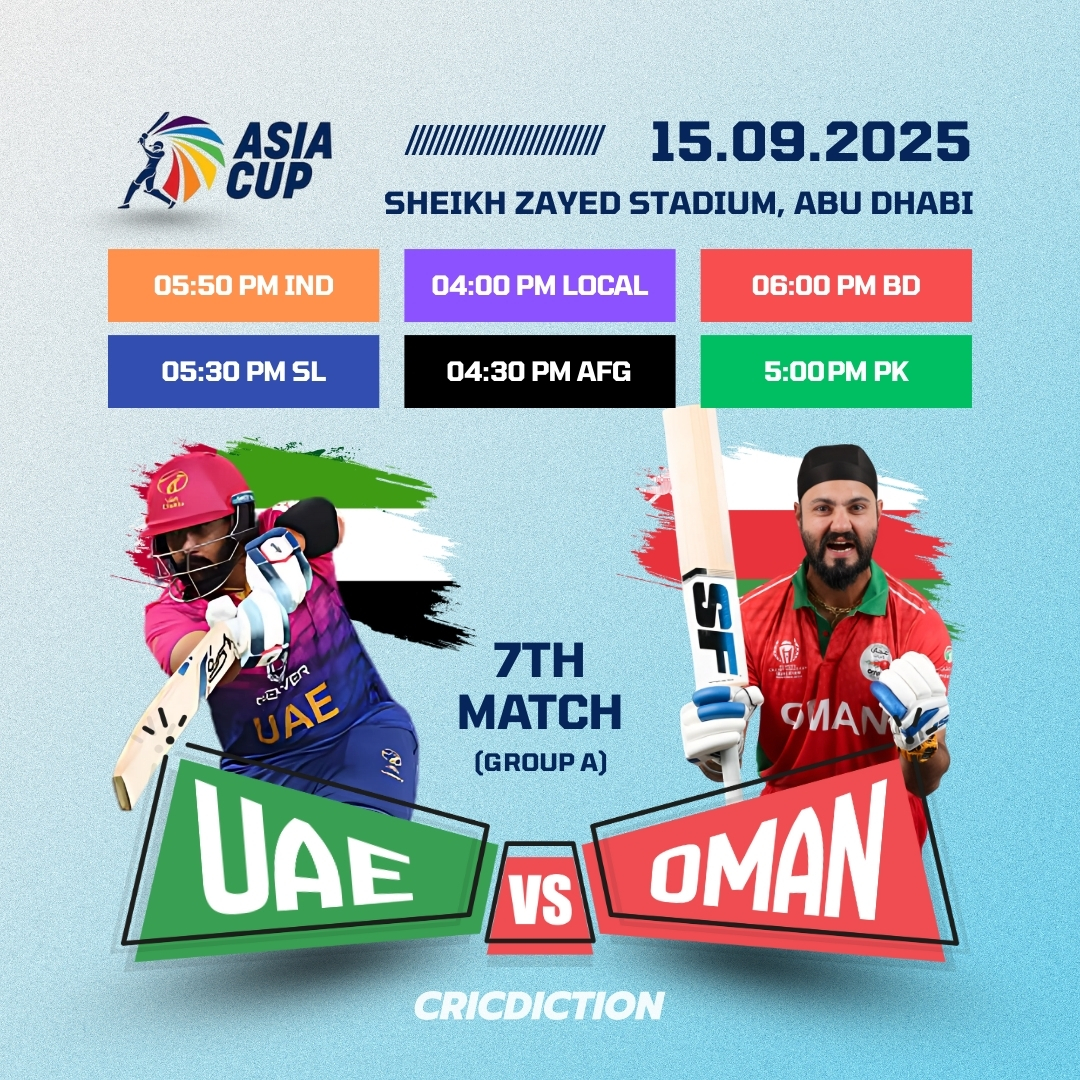 The United Arab Emirates (UAE) will take on Oman (OMN) in Match 7 of the Asia Cup 2025 at the Sheikh […]