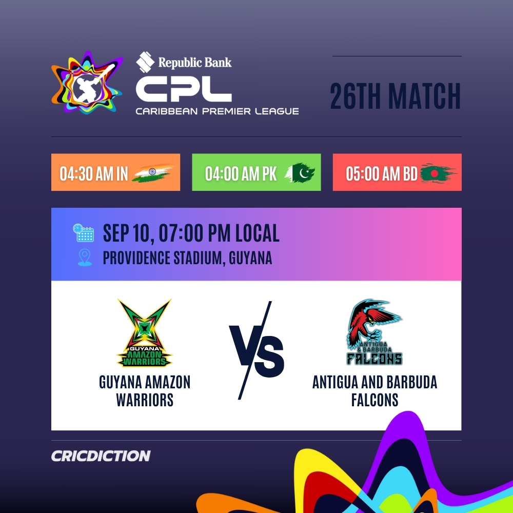 Guyana Amazon Warriors to Face Off Against Antigua and Barbuda Falcons in CPL 2025 Match On Thursday, September 11, the […]