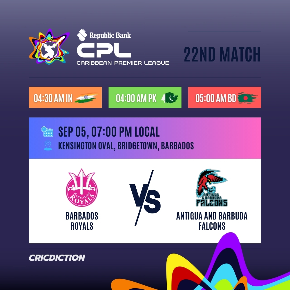 ## Barbados Royals to Face Off Against Antigua And Barbuda Falcons in Exciting CPL Match ## ### Match Details: ### […]