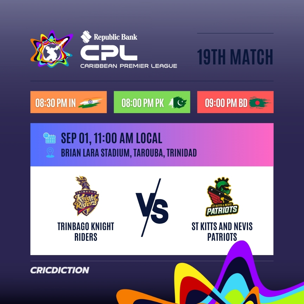 Trinbago Knight Riders to Take on St Kitts & Nevis Patriots in Crucial CPL 2025 Encounter On Monday, September 1, […]