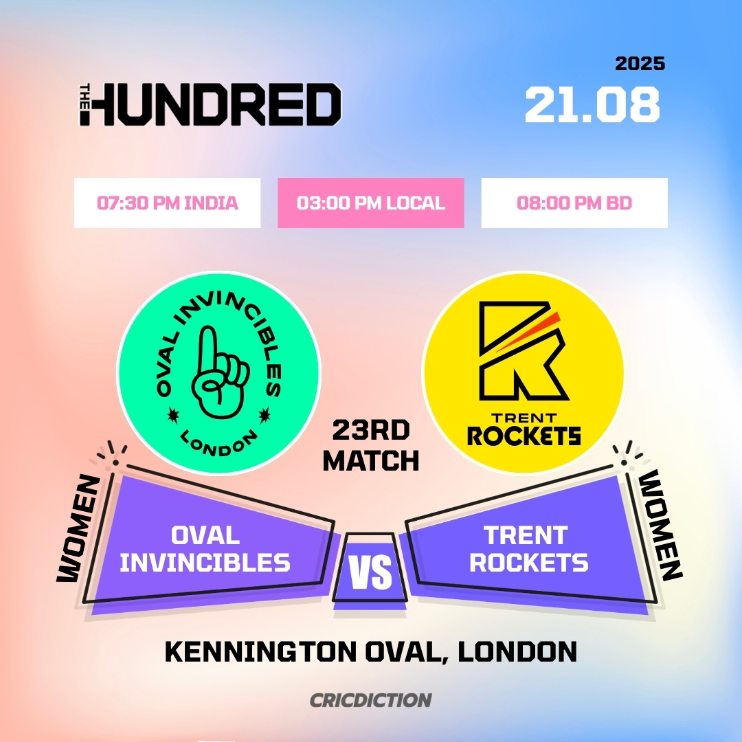 The Hundred Men’s 2025: Match 23, OVI v TRT Match Prediction