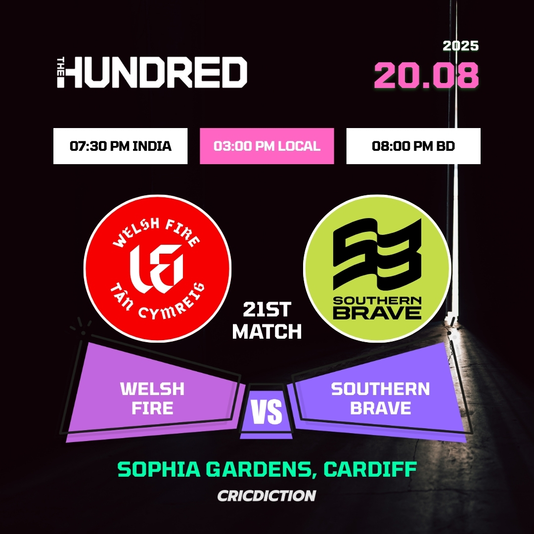 Welsh Fire to Face Southern Brave in The Hundred Men’s Competition 2025 On August 20th, Welsh Fire will clash with […]