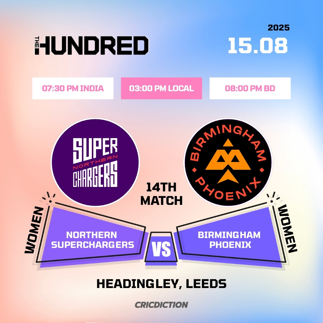 Northern Superchargers (NOS) are all set to face Birmingham Phoenix (BPH) in match No. 14 of The Hundred Men’s 2025 at […]